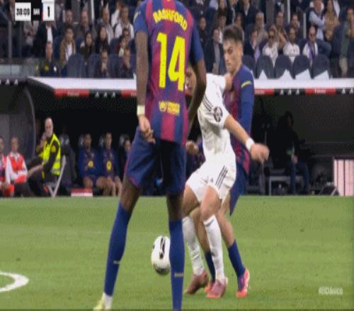 易边再战还是皇马稍占上风,开场仅5分钟,贝林厄姆右路强行突破杀入禁区倒三角回传,加西亚滑铲过来将球挡下,皮球击中贝林厄姆膝盖又弹出去打到加西亚手上。主裁在VAR确认后吹罚了点球,姆巴佩操刀主罚未能把握住梅开二度的绝佳机会,大力兜射打得太正被什琴斯尼奋勇扑出。巴萨这边苦攻无果,赛前英勇无比的亚马尔不是带球带丢,就是射门高射炮打飞机,到了补时最后时刻他们反倒是热闹起来,先是佩德里爆铲楚阿梅尼,几乎是压哨领到黄卡,2黄变1红被罚下。之后就是亚马尔的表演,本场近乎隐身的他要和皇马球员约架,被提前换下场的维尼修斯本就火大,一下子从替补席冲过来,后被众人拦下。最终巴萨客场1:2不敌皇马,近3轮比赛输了2场。