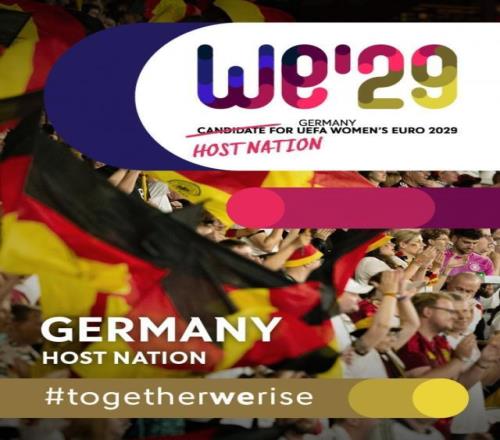 12月3日宣 德国足协官方确认,德国将承办2029年女足欧洲杯。本届欧洲杯申办共计有3方参与竞争,除了德国之外,还有波兰以及丹麦和瑞典(后两者为联合申办)。2029年女足欧洲杯将有16队参赛,预计将在8个城市举行。这将是自