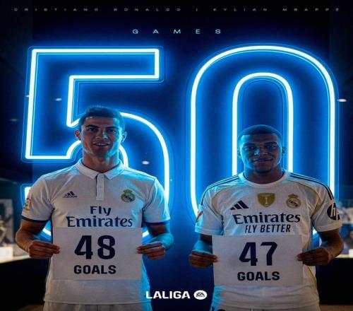 据统计,西甲历史上只有C罗前50场比赛的进球数比姆巴佩更多,C罗在代表皇马出战的前50场西甲比赛中打入了48球。